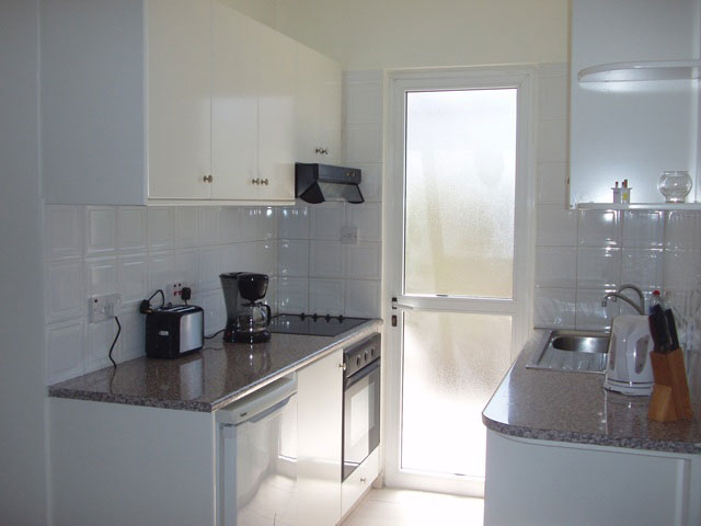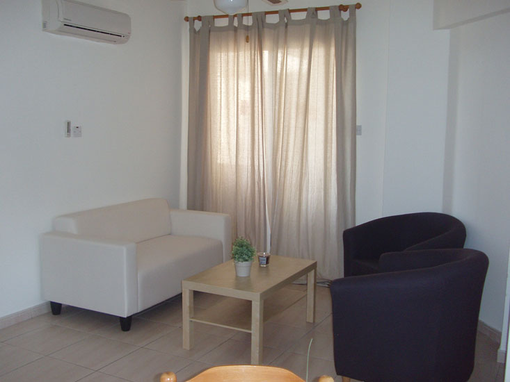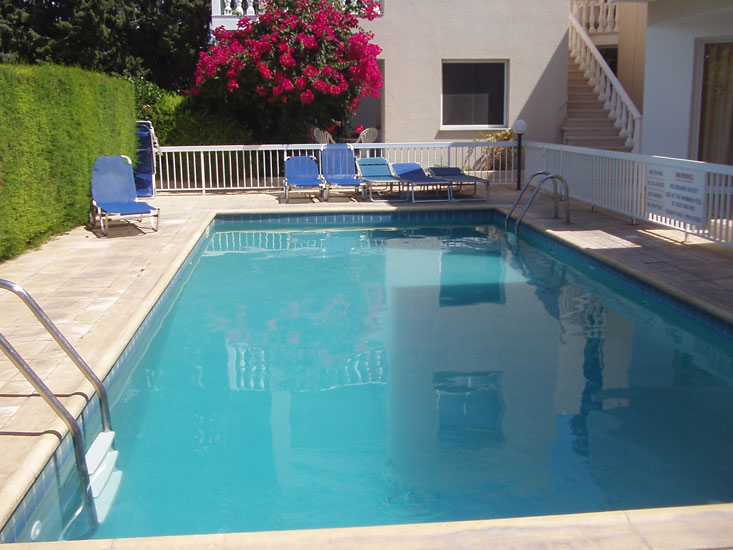 Constantia Gardens is an attractive modern complex of 12 apartments, 1 and 2 bedroom built in 2001. There is a shared swimming pool and is ideally situated in the heart of the tourist area in a quiet and secluded cul-de-sac. It is a mere 5 minute walk to the beach, the picturesque harbour,shops,bars restuarants and many of Paphos' places of historic interest such as the ancient Odeon and the 3rd Century Mosaic floors. Apartment 105 is a one bedroom apartment, however it can also be a double apartment as it has a connecting door through to Apartment 104.